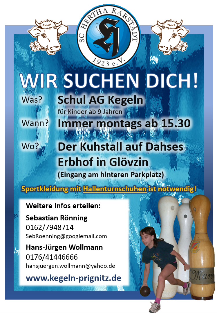 Hölzer. Die Herthaner arbeiten auch an der Zukunft. Im Rahmen der Schul-AG Kegeln der Grundschule Karstädt und anderen Aktionen versucht das Trainerteam Jugendlichen den Kegelsport näher zu bringen. |