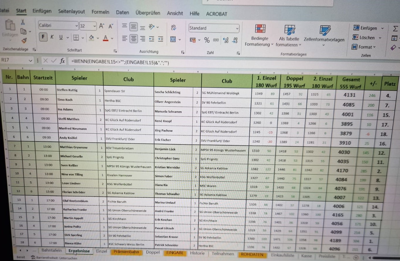 180 Wurf im Einzel pro Spieler sowie 195 Wurf im Doppel fanden sich die