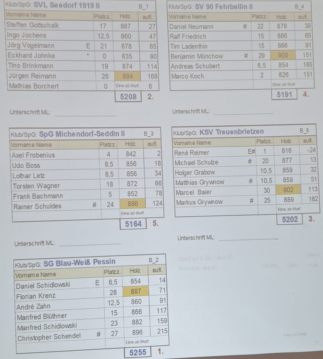 Landesklasse in Königs Wusterhausen in die neue Saison. Mit 5208 Holz belegte