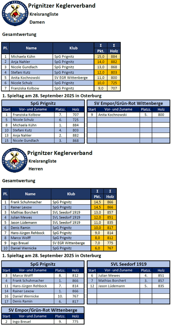Kreisrangliste Damen und Herren, 1. Spt.