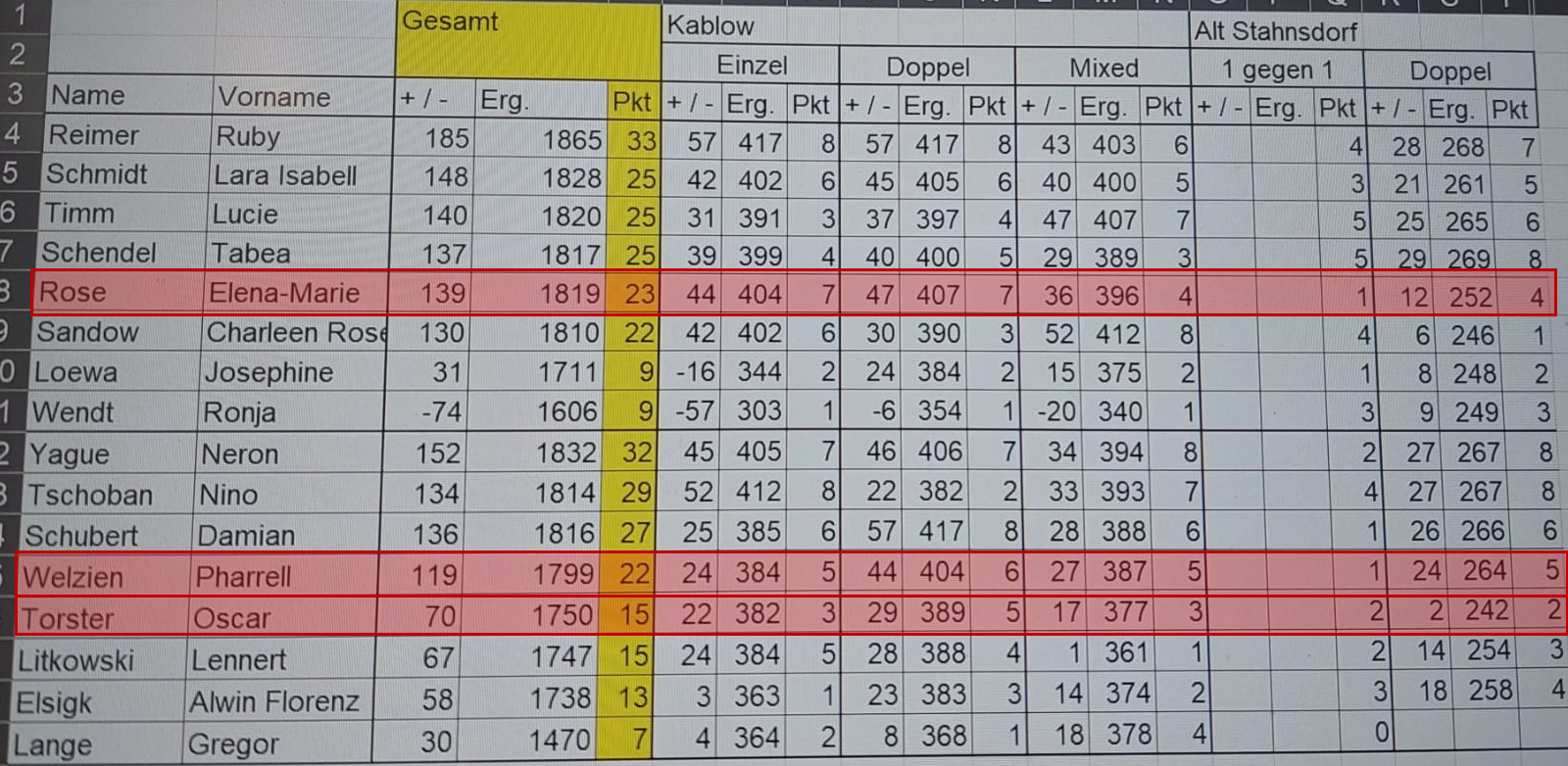 Zusätzlich qualifizierten sich Ruby Reimer und Neron Yague als Sieger für den Nationencup am 6. und 7. Dezember in Stralsund. Lara Schmidt und Pharrell Welzien sind bereits bei den Deutschen Meisterschaften für die Nationalmannschaft nominiert worden und qualifiziert gewesen.