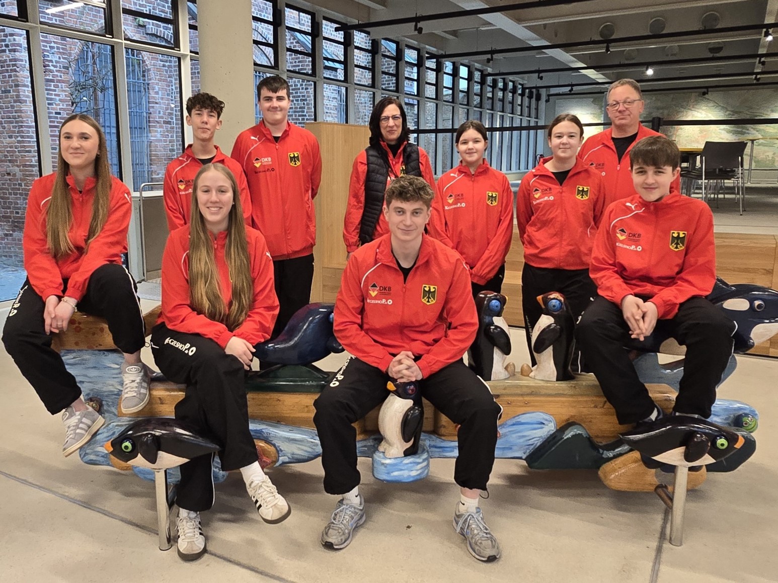 Deutsche Nationalmannschaft im Meeresmuseum in Stralsund v.l.: Lindsay Gerkhardt, Pharrell Welzien, Greta Liefland, Pascal Helmholz, Betreuerin Anke Neumann, Helge Schlötels, Juliane Ast, Lara Schmidt, Betreuer Andreas Mai, Philipp Ast |