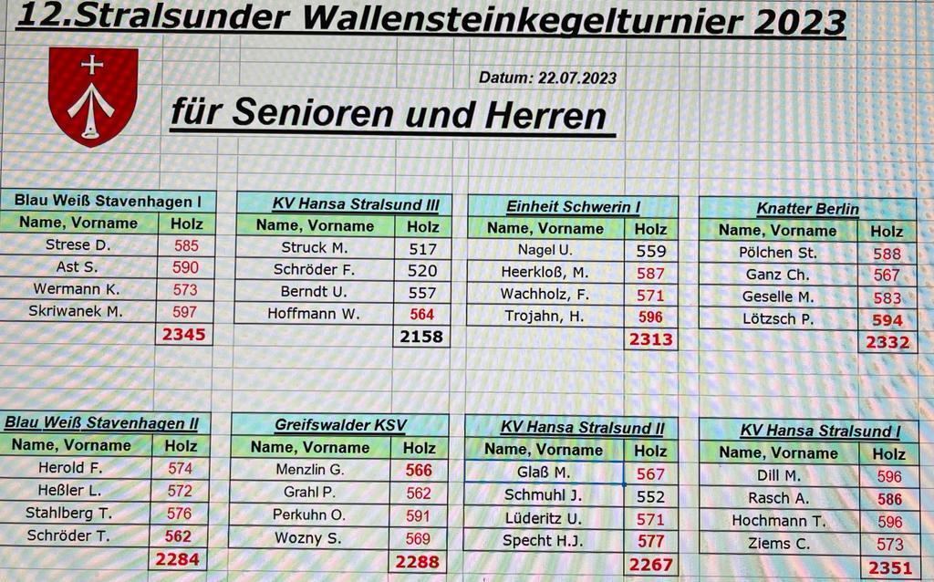 Prignitz an. Mit insgesamt 2332 Holz erkämpfte das Prignitz-Berliner Team Rang 3