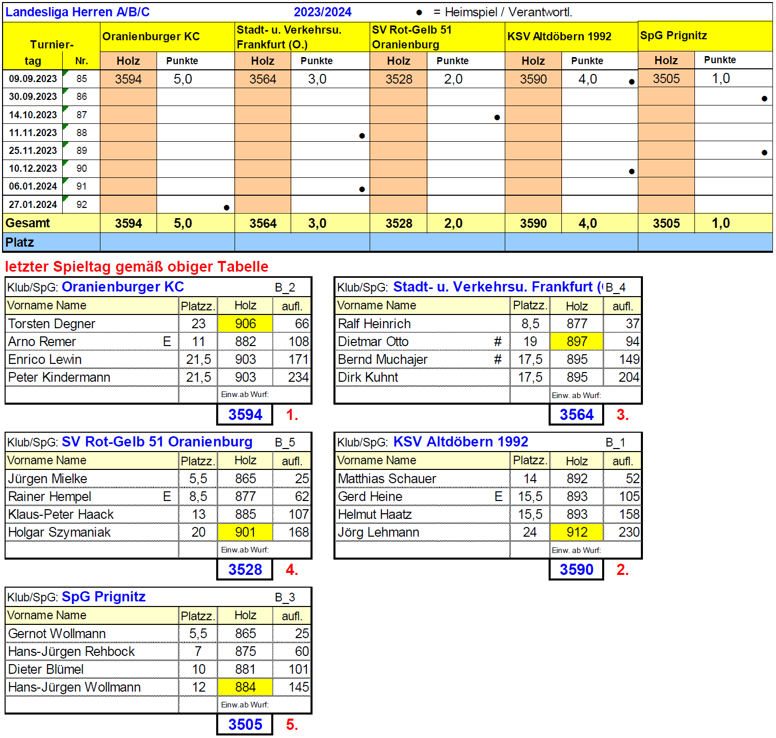 etablierten Teams Oranienburger KC (1. Platz/3594 Holz), KSV Altdöbern