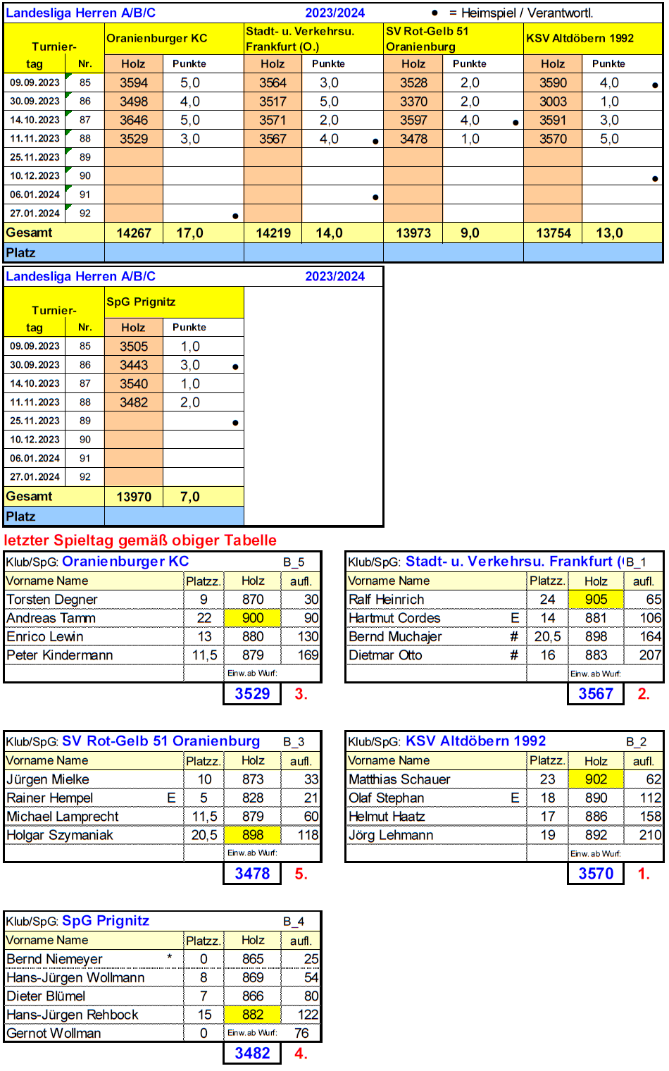 mit 3482 Holz den SV Rot-Gelb Oranienburg (3487 Holz) und belegten Rang 4. Damit