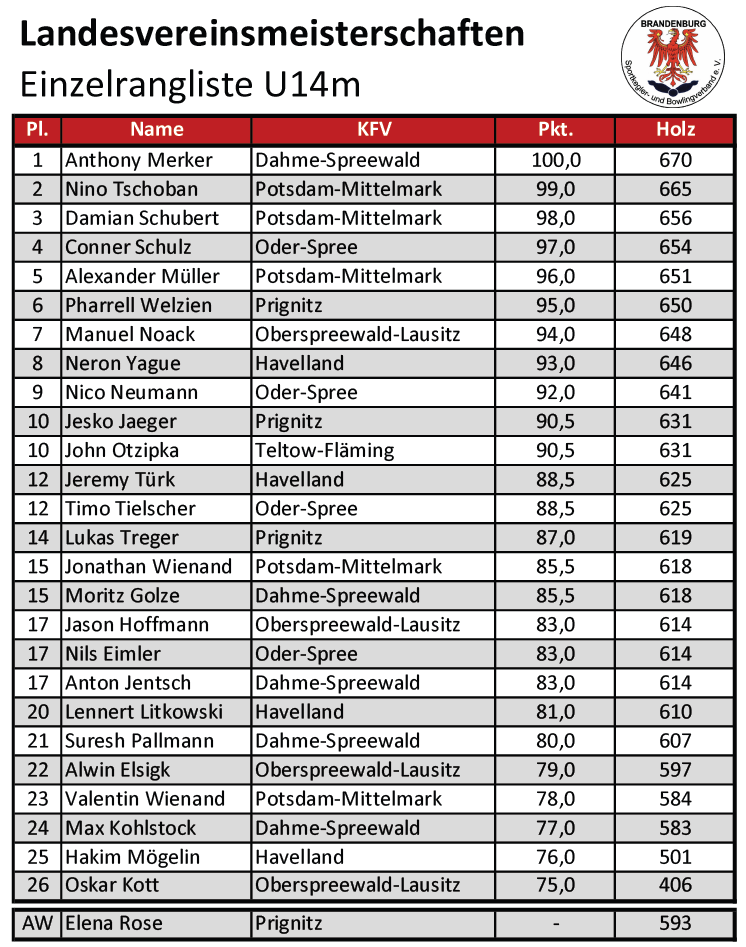 Landesvereinsmeisterschaften U14m, 1. Spt.