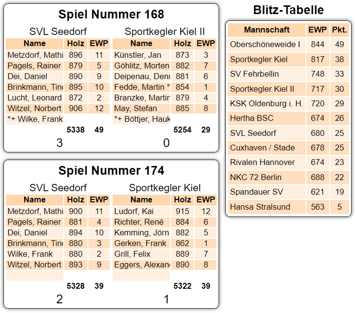 Sportkegler Kiel I und II. Damit gelingt den Prignitzern erneut ein wichtiger