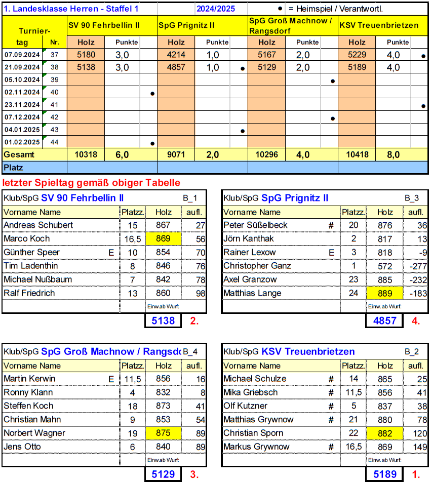 Fremde stark und gewann mit 5189 Holz vor dem SV 90 Fehrbellin II (5138) und der