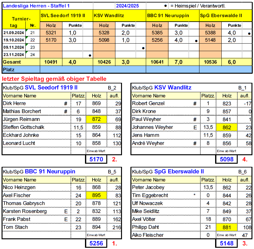 hinter dem Gastgeber BBC '91 Neuruppin (5256 Holz) souverän. Der bisherige