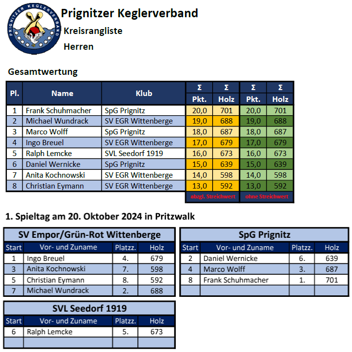 Pritzwalk starteten nun auch die Kegler der Kreisrangliste Herren in die neue
