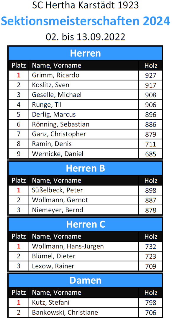Die Sieger der Sektionsmeisterschaften des SC Hertha Karstädt