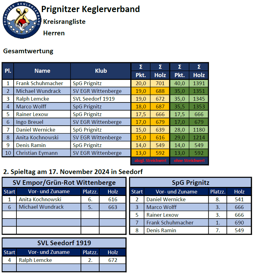 Am 22. Dezember folgt der 3. Spieltag in Perleberg. Dort hat Tabellenführer Schuhmacher dann Heimrecht und kann schon einen großen Schritt in Richtung Titel machen.