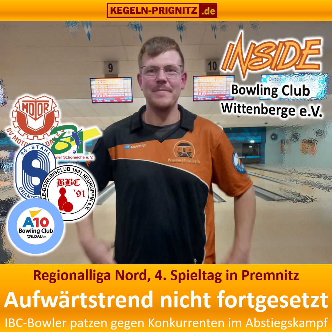 Gegen die Topteams der Liga wusste der IBC zu überzeugen. Mit der SG Stahl Brandenburg bezwangen die Wittenberger erneut ein Team aus der oberen Tabellenhälfte und gegen den Tabellenzweiten B1 Bowler Schöneiche V fehlten lediglich 3 Pins zum Punktgewinn, aber gegen die direkten Konkurrenten um den Klassenerhalt agierten die Inside-Bowler unglücklich. Mit 5 Pins fehlte gegen das Tabellenschlusslicht A10 BC Wildau III das Spielglück. Gegen den Tabellensechsten B1 Bowler VII setzte es eine deutliche Niederlage.
