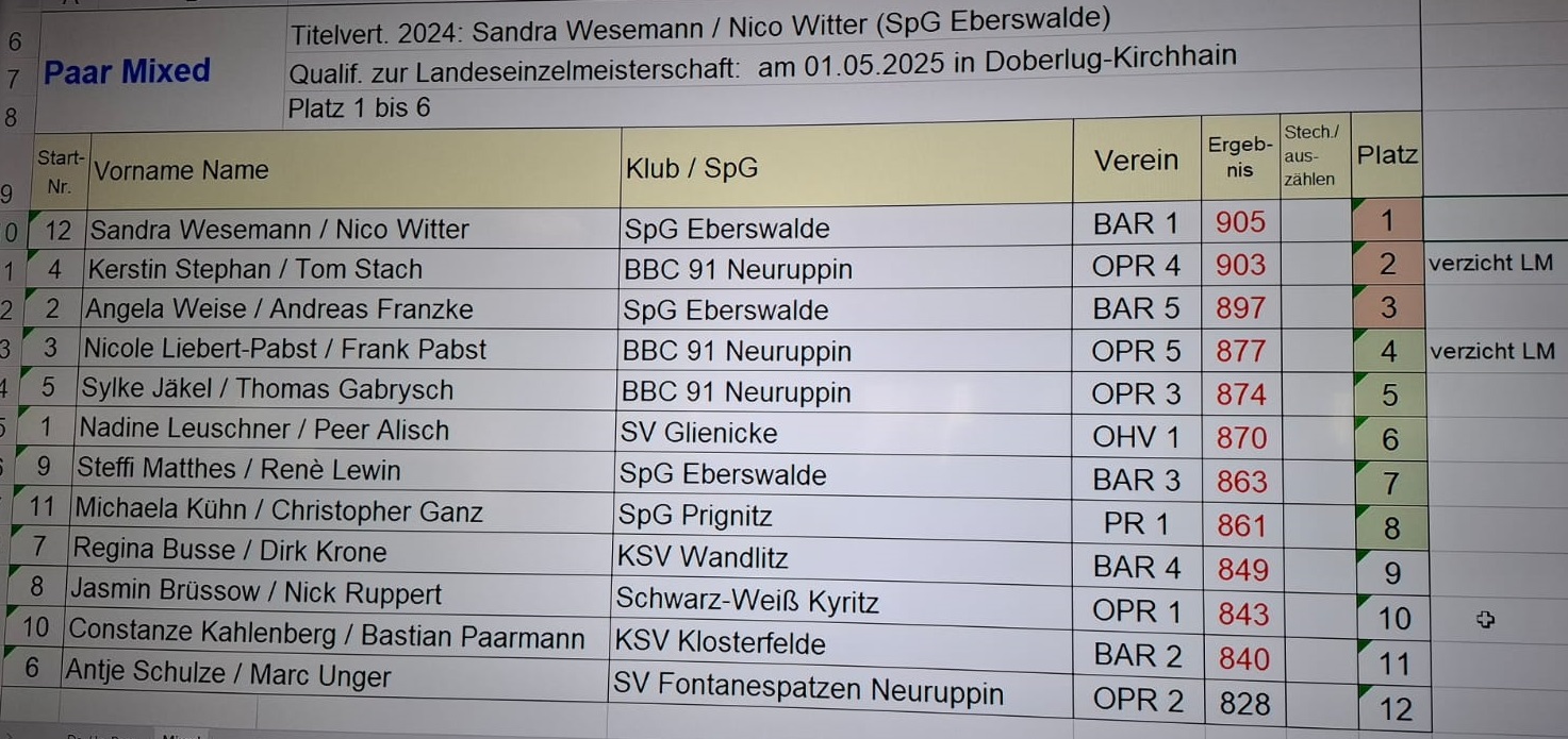 Ganz (Mixed/8. Platz) 2 Paare der SpG Prignitz für die Landesmeisterschaften am