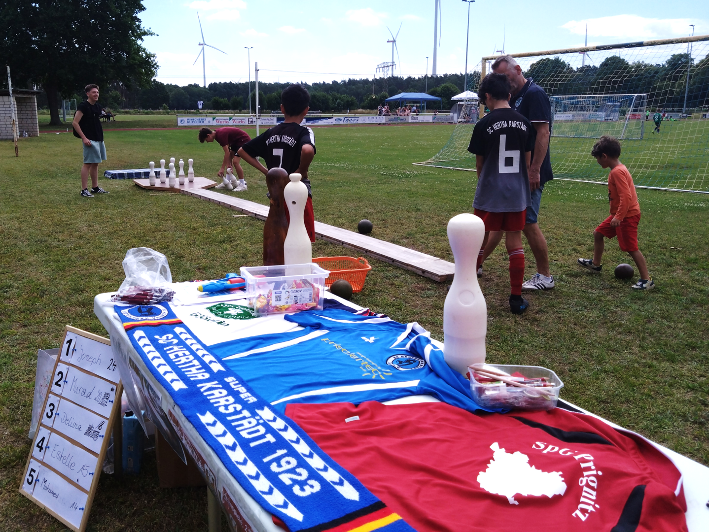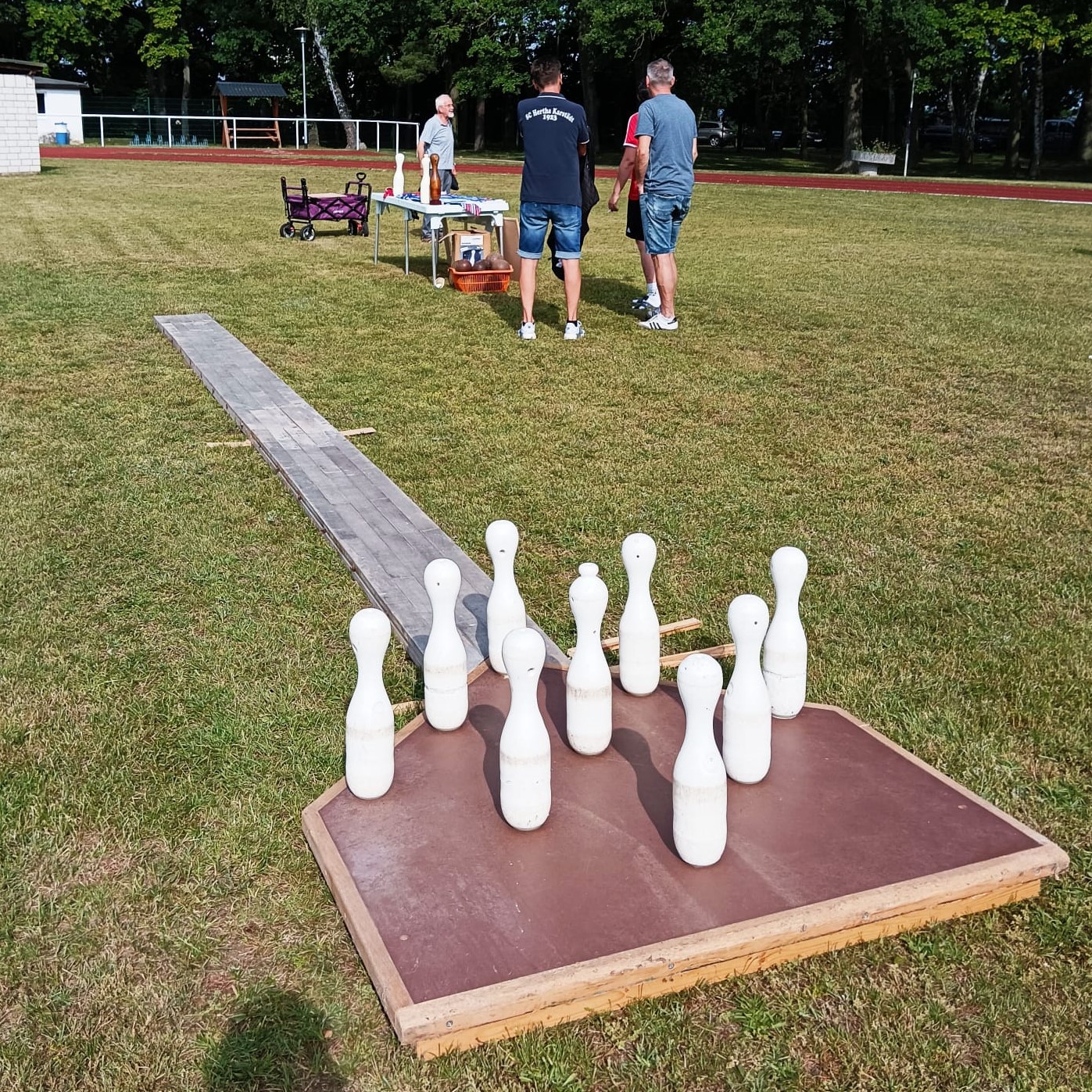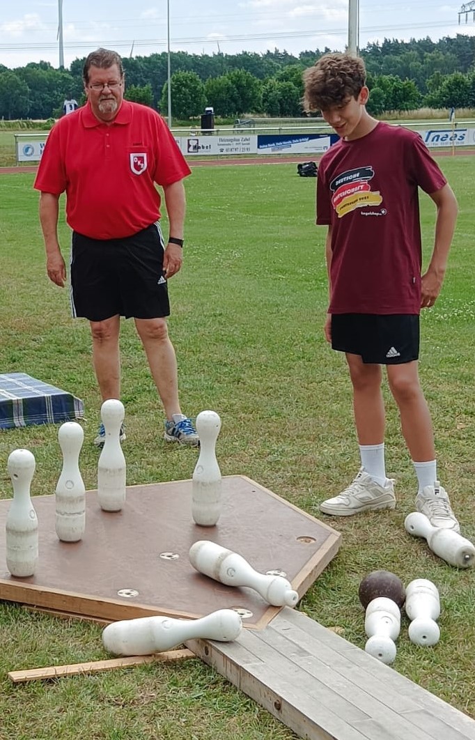Bei sommerlichen Temperaturen und Sonnenschein versuchten sich die Gäste unter Anleitung von Jugendnationalspieler Pharrell Welzien und den anderen Betreuern auf der Sommerkegelbahn in die Bestenlisten einzutragen. Die Jugendlichen freuten sich zudem über kleine Geschenke der Adler-Apotheke, VR-Bank und des Pflegedienstes Stech.
