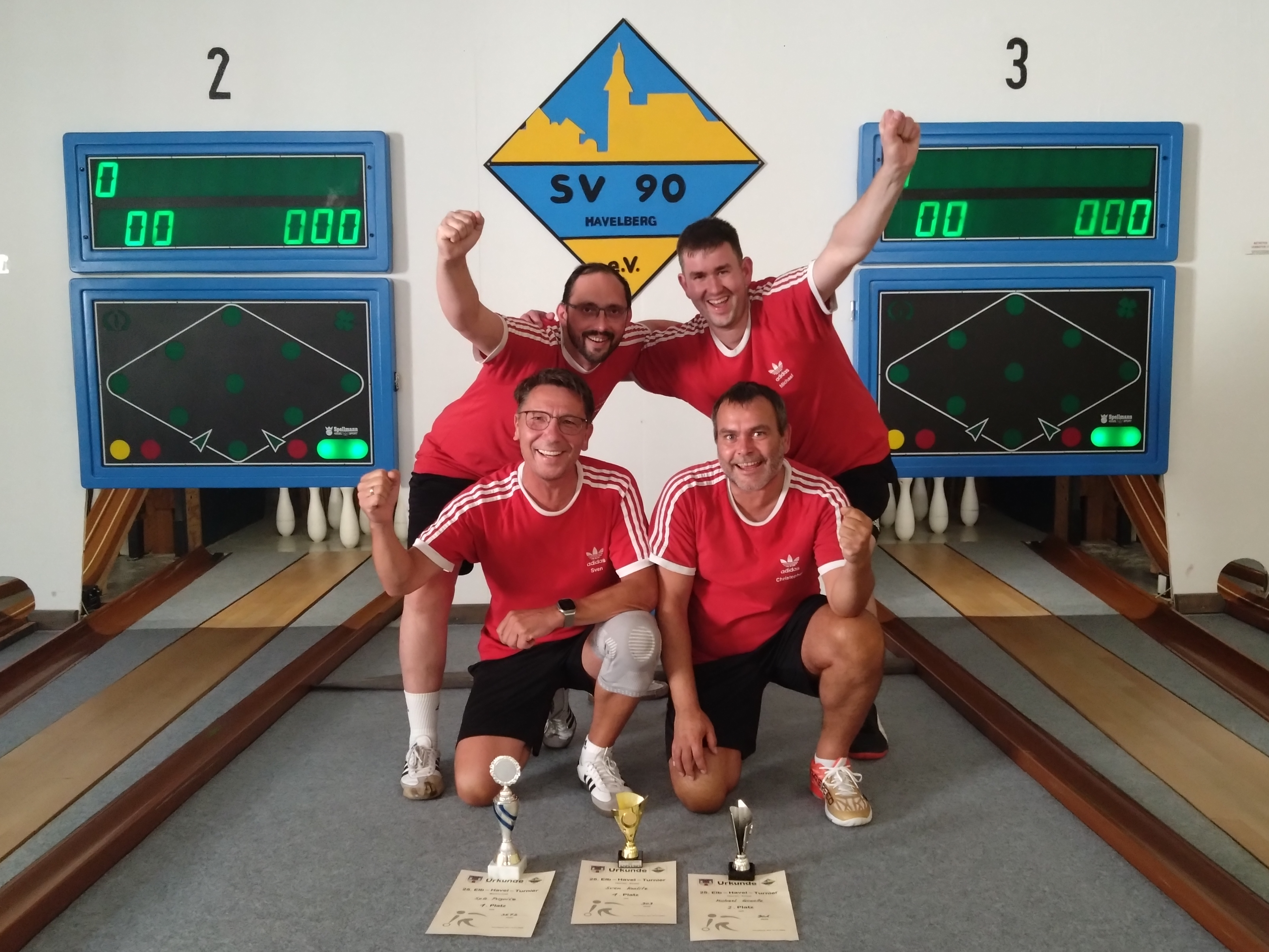 Die Karstädt/Perleberger Spielgemeinschaft tat sich trotz ordentlicher Ergebnisse schwer ihrer Favoritenrolle gerecht zu werden. Nach Michael Geselle (901 Holz) und Christopher Ganz (866) lag die SpG nach dem Start zwar in Führung, hatte aber lediglich einen Vorsprung von 2 Holz auf Havelberg und 14 auf Stendal. Anschließend gelang es Sebastian Rönning mit 896 Holz die Stendaler auf 24 Holz zu distanzieren, aber der Gastgeber war weiterhin auf 3 Holz dran. SpG-Schlussspieler Sven Koslitz schob trotz der stark aufspielenden Johannes Heins (Havelberg) und Quentin Schild (Stendal), die wie Geselle 901 Holz erzielten, sein Team mit der Mannschafts- und Tagesbestleistung von 909 Holz zum Pokalsieg.