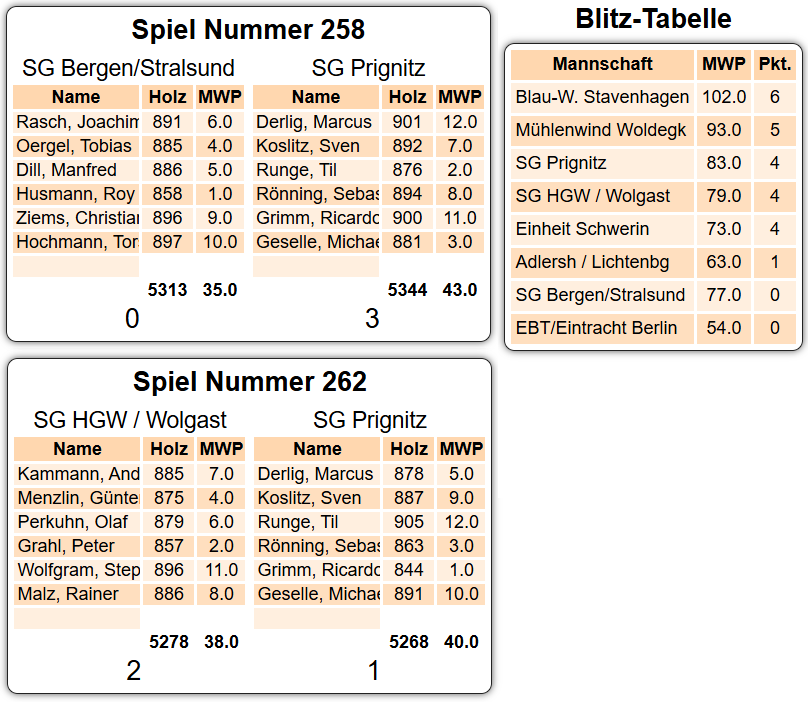 die SG Bergen/Stralsund mit 5344:5313 Holz sowie 43:35