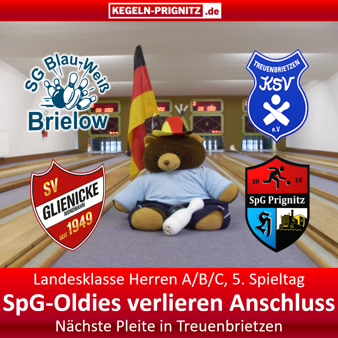 Zeitgleich feierte die SG Blau-Weiß Brielow mit 3453 Holz den ersten Auswärtssieg der Saison und festigte die Tabellenführung mit 17 Punkten noch weiter. Mit 3440 Holz erkämpfte sich der SV Glienicke/Nordbahn den 2. Platz vor dem KSV Treuenbrietzen (3422 Holz/Platz 3). Beide teilen sich mit 12 Punkte den 2. Tabellenplatz.
