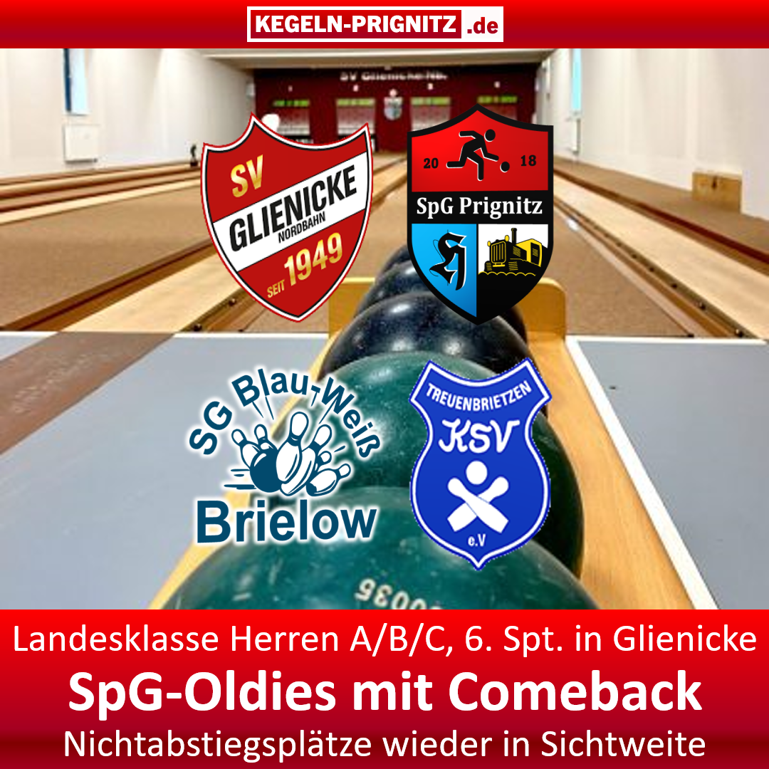 Der SV Glienicke/Nordbahn feierte mit 3478 Holz unterdessen einen ungefährdeten Heimerfolg und belegt mit 16 Punkten Tabellenplatz 2. Tabellenführer SG Blau-Weiß Brielow kam mit 3356 Holz erstmals nicht über Rang 3 hinaus, liegt mit 19 Punkten aber weiterhin komfortabel auf dem 1. Platz. Mit 3332 Holz musste sich der KSV Treuenbrietzen mit Rang 4 begnügen. Mit 13 Punkten sind die Mittelmärker nun der Hauptkonkurrent der Rot-Schwarzen um den Klassenerhalt.